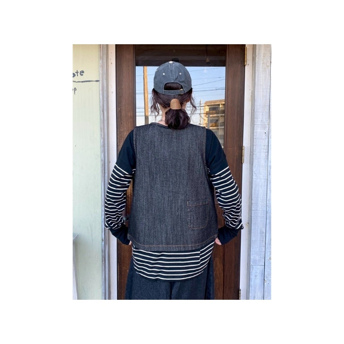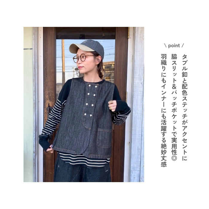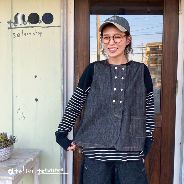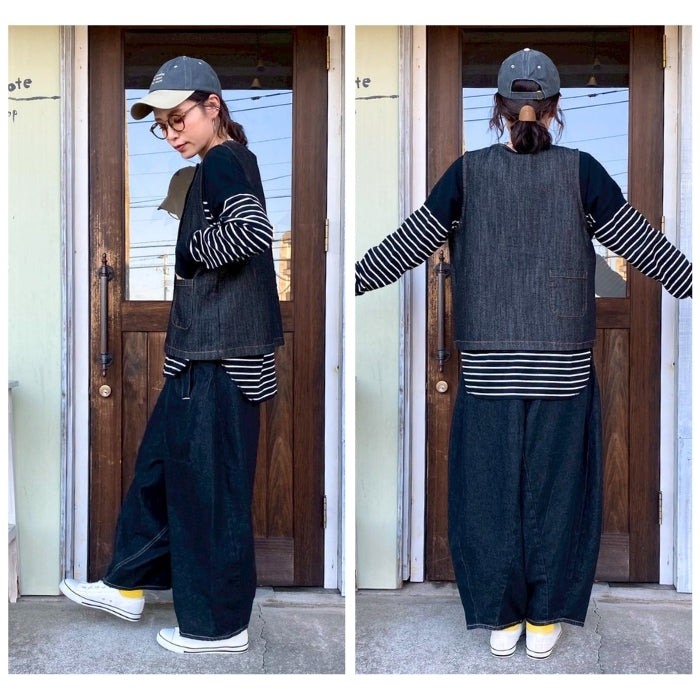 ほどよい厚みの綿素材に、柔らかくなじむデニム風の風合いが魅力。