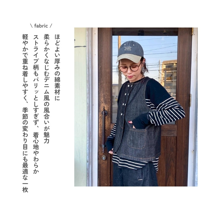 ストライプ柄もパリッとしすぎず、着心地やわらか。軽やかで重ね着しやすく、季節の変わり目にも最適な1枚です。