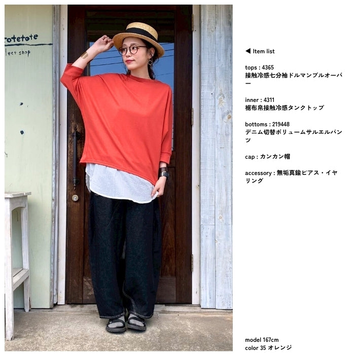 ひんやりとした肌触りが魅力の、接触冷感素材を使用した七分袖プルオーバー。