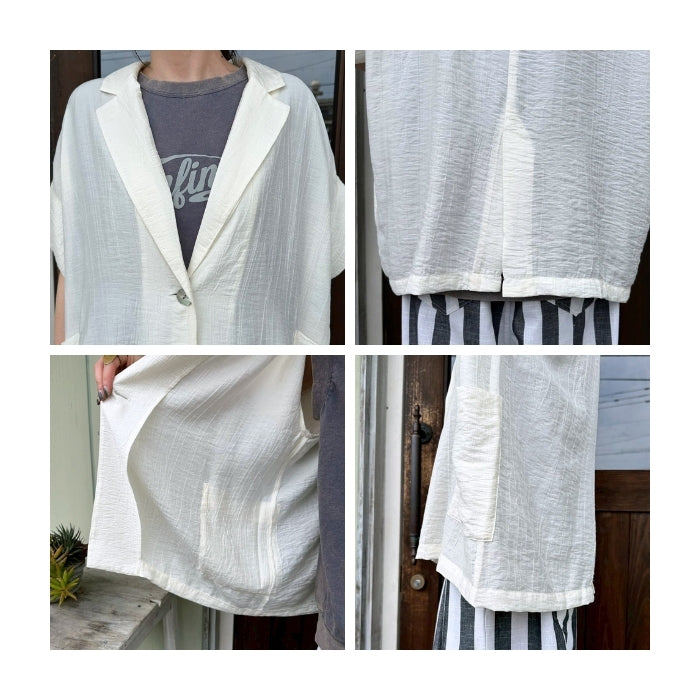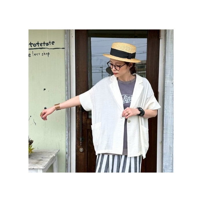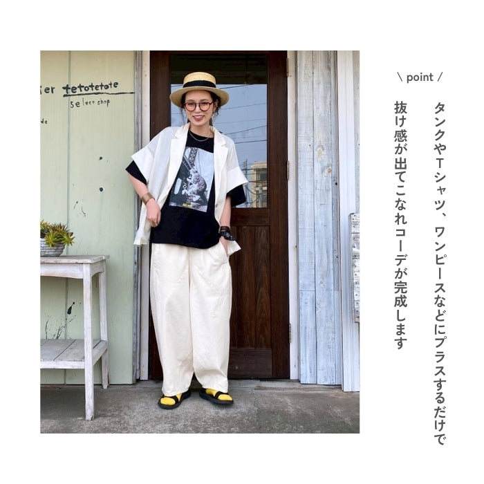 程よい袖丈と着丈が使いやすく、春夏のコーデにプラスアイテムとして最適です。
