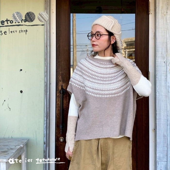 ぬくもりを感じる求心柄が目を惹くニットベストが登場