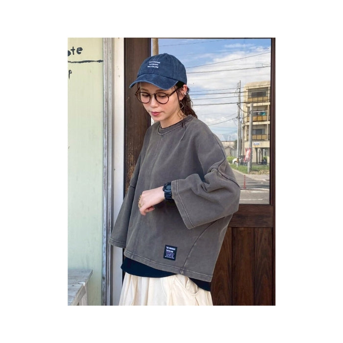 80514748 裏毛切替クロップド袖Bigプルオーバー