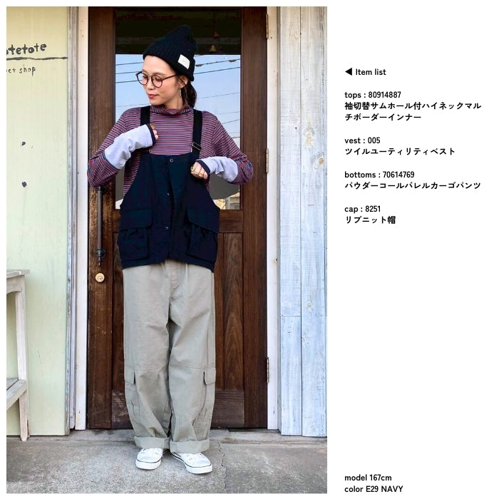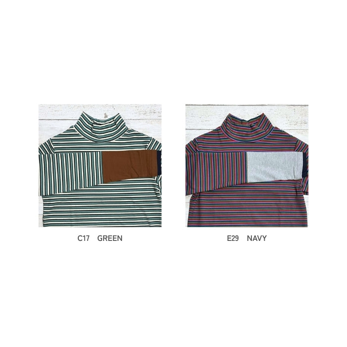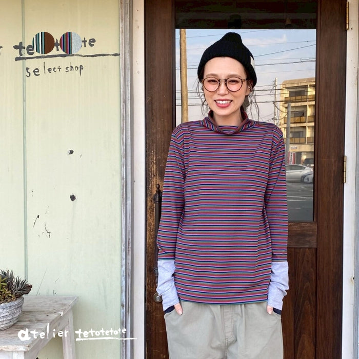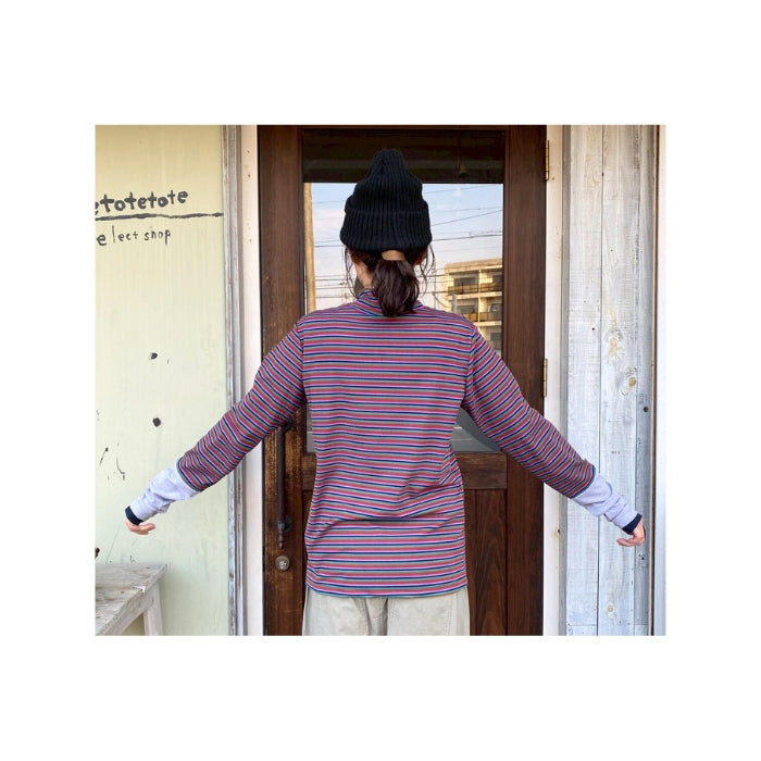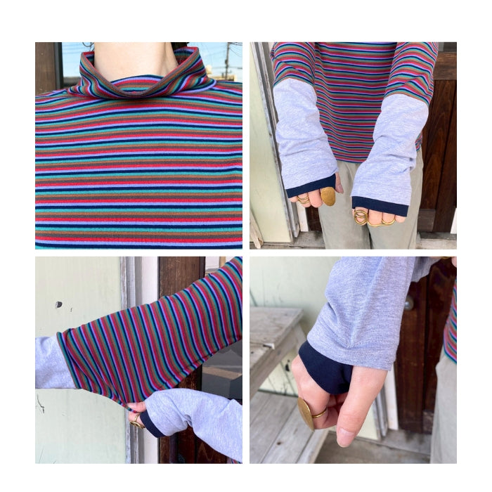 80914887 袖切替サムホール付ハイネックマルチボーダーインナー